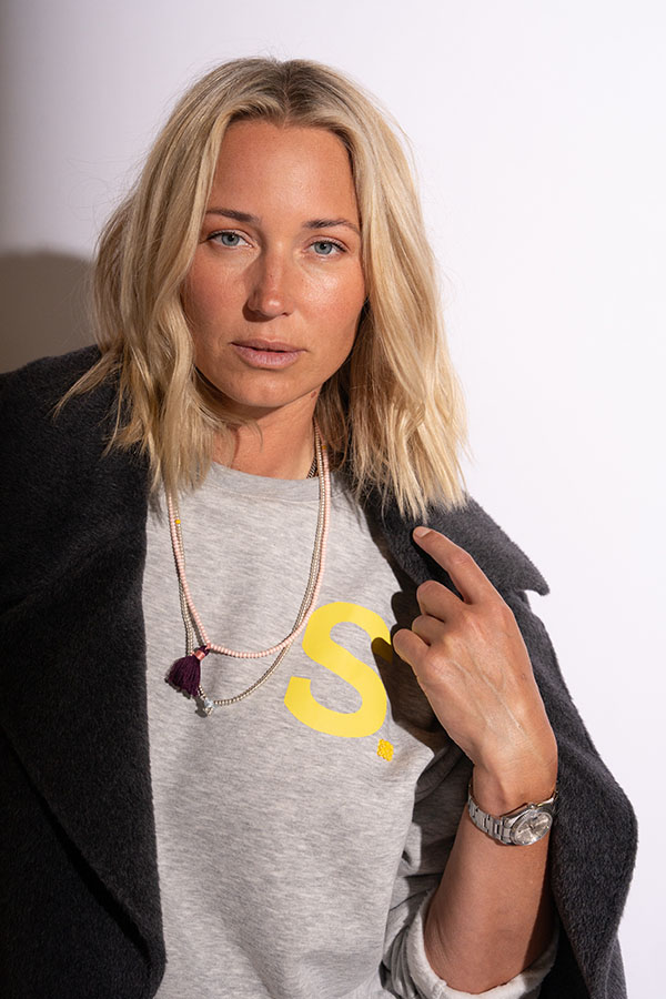 Prachtige zachte kwaliteit Dropped shoulder Aan de binnenkant gebruched Buitenkant eco pu print Handgeborduurde kraaltjes Loose fit Composition: 65% cotton 35% polyester 280 grams